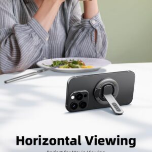 This 3-in-1 magnetic finger ring phone holder is made from a durable Zinc Alloy, Aluminum Alloy, and Silicone Rubber combination with an N52 magnet for strong magnetic performance. It features adjustable height, flexible positioning, horizontal and vertical screen switching, and a super tensile silicone ring, compatible with 3-7 inch smartphones. Its ultra-thin, compact design offers portability and hands-free convenience for various scenarios like office, travel, or gaming.