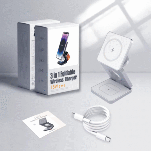 3-in-1Portable Wireless Charger Stand – 15W – White