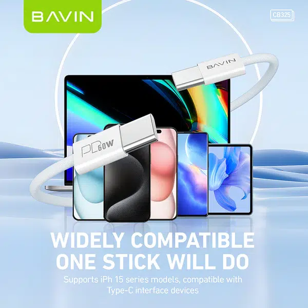 BAVIN U-CB325 Type-C Fast Charging Data Cable – 60W – 2 Meters