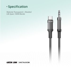 Green Lion USB-C to AUX Braided Cable 1M – Black