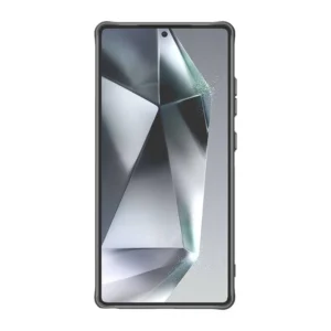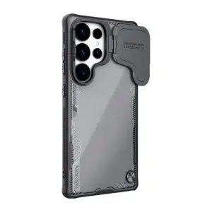This black case features a striking transparent design with a bold edge. Crafted for durability, it offers sleek protection while maintaining a sophisticated, modern look that complements your device.