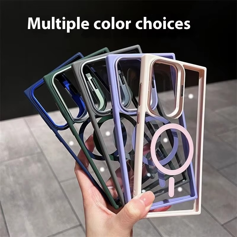 Clear PC Hidden Holder Magsafe Samsung Case with Colored Borders